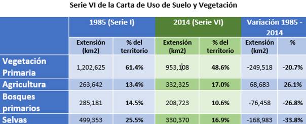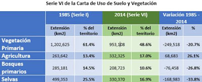 La serie VI registra un 48.5% de superficie del país cubierta con vegetación primaria, lo que muestra una mínima variación entre las series IV y V.