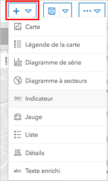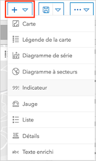 Une fois le tableau de bord créé, vous allez pouvoir choisir parmi une riche librairie de composants graphiques ceux qui représenterons vos données. Toutes les couches d'entités et les tables de votre carte web peuvent être présentées avec ces composants graphiques.