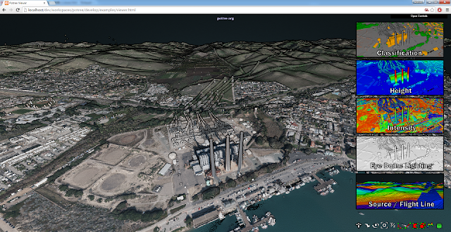 Potree es un visor de nubes de puntos basada en WebGL para grandes conjuntos de datos. Potree software permite la publicación de nubes de puntos LiDAR en la web de tal forma que cualquier persona puede explorar los datos con nada más que un navegador de internet. El visor 3D interactivo no sólo visualiza el LIDAR de muchas maneras útiles e intuitivas, también viene con herramientas para realizar varias mediciones. Como único patrocinador, rapidlasso GmbH es el principal apoyo de este poderoso paquete de código abierto por Markus Schütz.