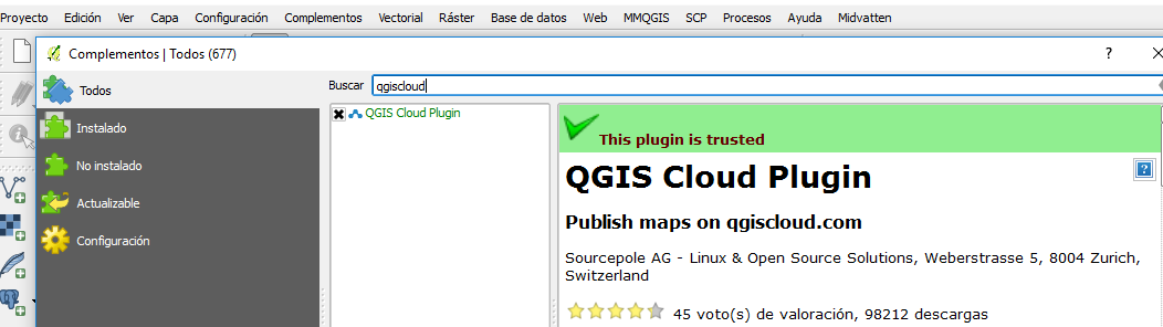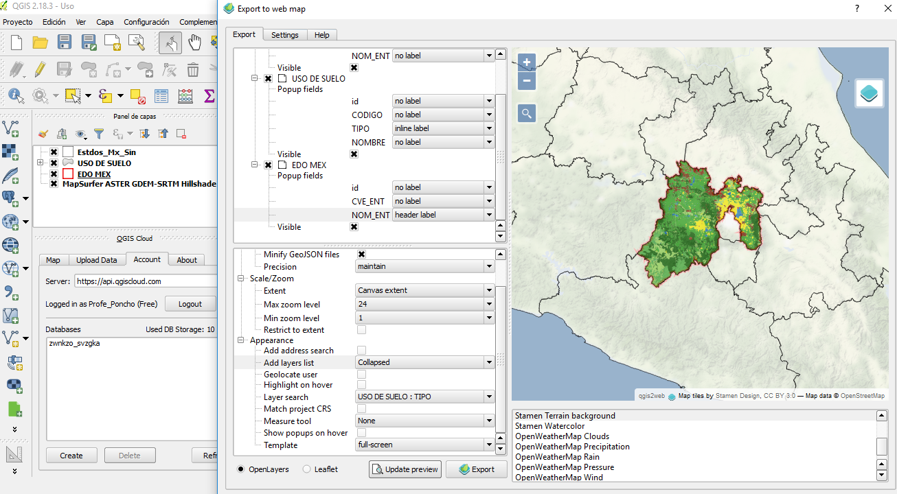 IMPERDIBLE, esta plugin de Qgis (¿Ya les dije que deben aprender a usar qGis?) al igual que qgis2Web sólo necesita que montes tu proyecto elaborado con el formato deseado, a diferencia del pasado esta plugin te otorga 50MB GRATIS para montar tu mapa y poder cargar en la web su cartografía o proyecto, con salidas WMS y URL propia.