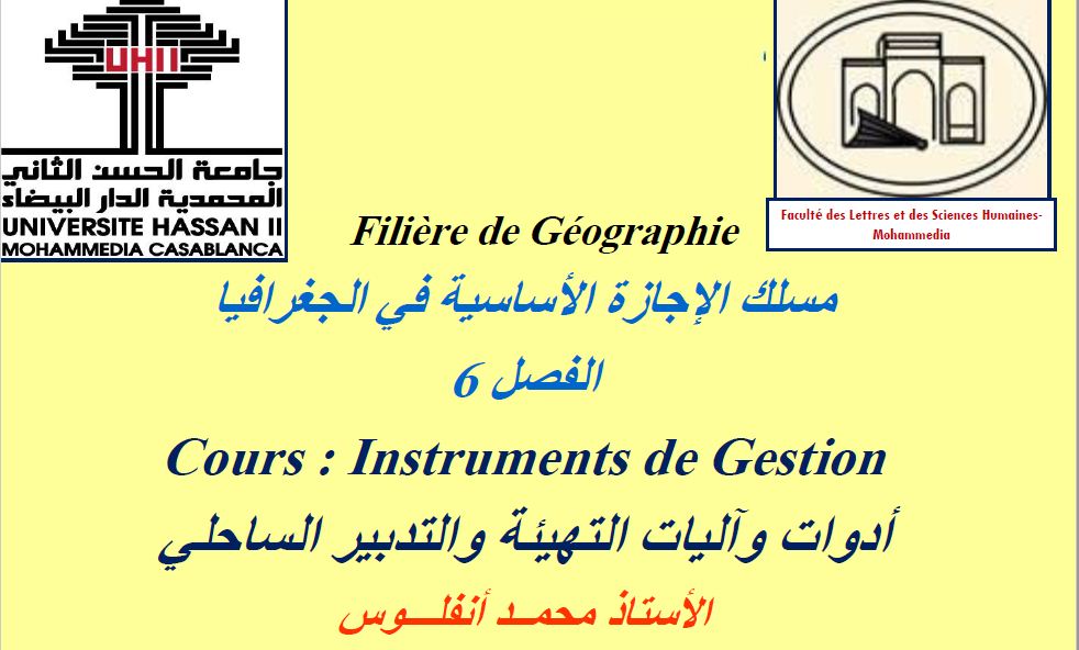 درس من الدروس الجامعية الأستاذ أنفلاس للفصل السادس تحت عنوان أدوات وآليات التهيئة والتدبير الساحلي بين أيدكم للتحميل