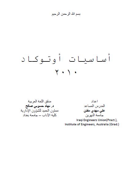 [h=2]أفضل الكتب لتعلم الأتوكاد "أساسيات أتوكاد 2010" إعداد علي مهدي المفتن[/h]