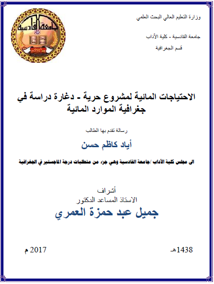 إلى مجلس كلية الآداب / جامعة القادسية وهي جزء من متطلبات درجة الماجستير في الجغرافية