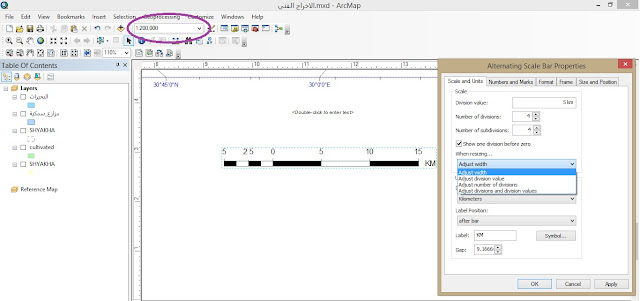 الاخراج الفني للخرائط Arcmap - إضافة مقياس الرسم Scale Bar والتعديل عليه بما يناسب ا