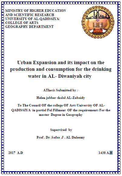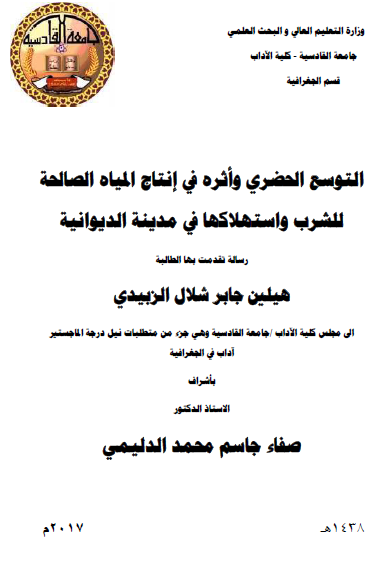 [h=1]التوسع الحضري وأثره في إنتاج المياه الصالحة للشرب واستهلاكها في مدينة الديوانية[/h]