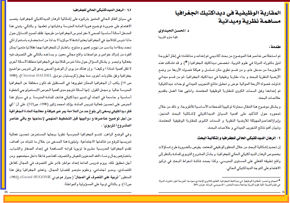 المقاربة الوظيفية في ديداكيك الجغرافيا مساهمة نظرية وميدانية الحسن الحيداوي كلية علوم التربية PDF