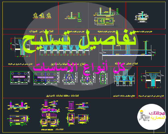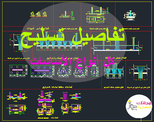 يمكنك معرفة كيفية تصميم كل أنواع الأساسات و كذلك تفاصيل تسليحها ( لبشة - لبشة على خوازيق - قواعد منفصلة - هامات خوازيق - قواعد مشتركة ) من خلال ملف الأوتوكاد النموذجي التالي من هنا