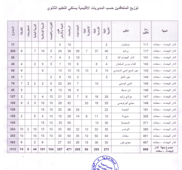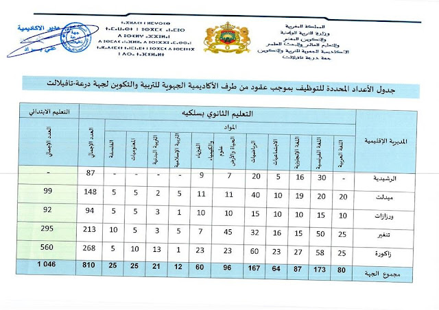 الأكاديمية الجهوية للتربية والتكوين لجهة مراكش أسفي 3601 الأكاديمية الجهوية للتربية والتكوين لجهة الرباط سلا القنيطرة 252 الأكاديمية الجهوية للتربية والتكوين لجهة العيون الساقية الحمراء 2055 الأكاديمية الجهوية للتربية والتكوين لجهة الشرق 2121 الأكاديمية الجهوية للتربية والتكوين لجهة بني ملال خنيفرة 3763 الأكاديمية الجهوية للتربية والتكوين لجهة طنجة تطوان الحسيمة 3865 الأكاديمية الجهوية للتربية والتكوين لجهة الدرالبيضاء سطات 341 الأكاديمية الجهوية للتربية والتكوين لجهة كلميم واد نون 2450 الأكاديمية الجهوية للتربية والتكوين لجهة فاس مكناس 1856 لأكاديمية الجهوية للتربية والتكوين لجهة درعة تافيلالت1741 الأكاديمية الجهوية للتربية والتكوين لجهة سوس ماسة الأكاديمية الجهوية للتربية والتكوين لجهة الداخلة واد الدهب