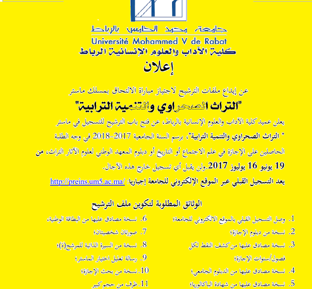 فتح 12 ماستر بكلية الآداب والعلوم الانسانية الرباط -إعلانات الماستر 2017-2018