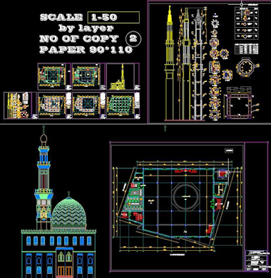 إليكم مجموعات من ملفات اتوكاد تحتوي رسومات خاصة بتصميم مساجد و تصميم قبة المسجد و هي تجميع لافضل ما يمكنك الإعتماد عليه كنماذج جاهزة يمكن العمل عليها حيث يحتوى الملف على المخططات المعمارية و الإنشائية وكذلك ألواح تفاصيل الاعمال الصحى بالاضافه الى جداول وقوائم الكميات للموارد الازمه للمسجد... تصميم مسجد ( معمارى وإنشائى كامل و كل كبيرة وصغيرة ) /و يمكن تحميله من هنا مشروع مسجد بالاوتوكاد