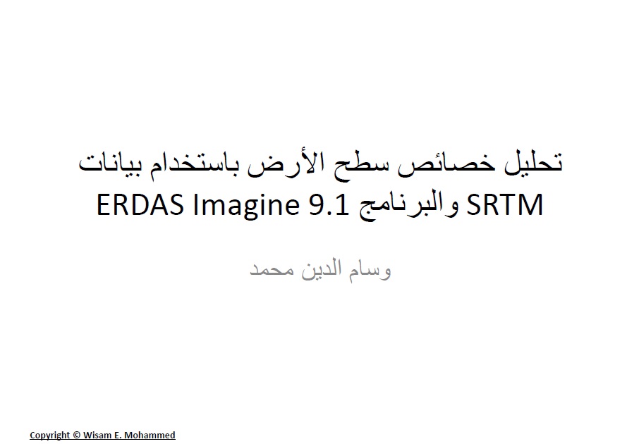 [h=2]ملزمة شرح تحليل خصائص سطح الأرض باستخدام بيانات SRTM والبرنامج 9.1 ERDAS Imagine[/h][h=3]نبذه مختصرة عن الكتاب :[/h]خطوات تحليل الخصائص الطبوغرافية1. الحصول على البيانات2. تجهيزالبيانات1. فك ضغطهاIMG إلى GEOTIF 2. تحويل تنسيقها من3. التخلص من القيم الشاذة4. حساب المتغيرات الطبوغرافية