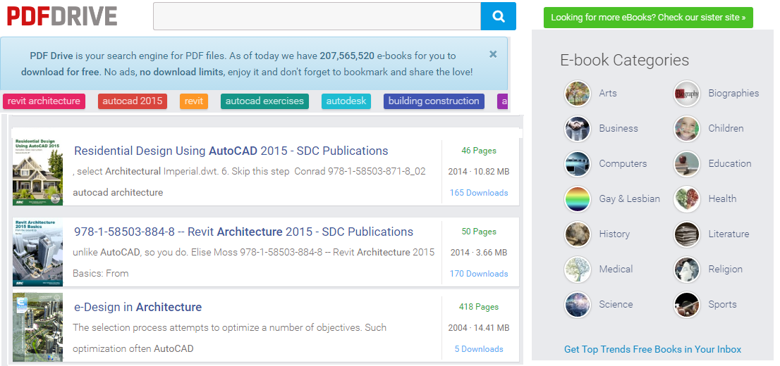 موقع pdfdrive وهو عبارة عن مكتبة ضخمة للكتب الإلكترونية يضم ملايين الكتب للتحميل مجانا، حيث يمكنك البحث عن عنوان الكتاب الإلكتروني الذي تريده أو إختيار ما يهمك حسب المجال الذي يهمك حيت يشمل عدة مجالات متنوعة من علوم و فنون و إقتصاد.. و طبعا يتضمن كل ما يشمل جميع العلوم الهندسية و يستعرض الموقع لك لائحة كبيرة جدا وبلغات مختلفة لما بحثت عنه ، تقوم باختيار واحدة من هذه الكتب و تقوم بتحميله .