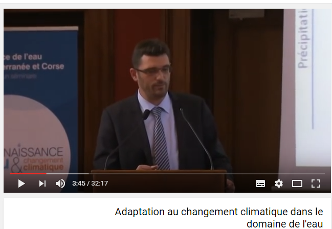 Adaptation au changement climatique dans le domaine de l'eau Séminaire Eau et Changement Climatique de l'Agence de l'eau Rhône-Méditerranée et Corse -- 19 septembre 2012, Lyon. Intervention de Stéphane SIMONET, consultant spécialisé dans l'adaptation au changement climatique. Adaptation au changement climatique dans le domaine de l'eau -- quelles réponses face aux risques et aux incertitudes ? L'intervention se propose d'apporter un éclairage sur les défis que pose le changement climatique aux gestionnaires et aux usagers et vise à partager un ensemble de recommandations pour mieux gérer les impacts du réchauffement dans la planification et la gestion des eaux.