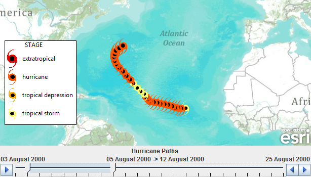 Visualizing temporal data can help you step through your data in a temporal sequence and see the patterns or trends that emerge in your data over time. In ArcMap, ArcGlobe, or ArcScene, you can enable time properties on your data and visualize it using a simple time slider that changes the data in the display or in a graph through time.