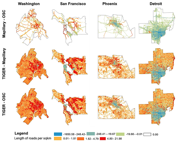 Results from our systematic and quantitative analysis of these two emerging VGI sources indicate that most Mapillary and OSC contributions occurred along control-access highways and local roads, and that the overall coverage in these sources is variable in comparison to an authoritative source (i.e., TIGER). Furthermore, our results showed that while the number of contributors varied across sites, only a few contributors were responsible for producing most of the raw data. User contribution patterns were also different in Mapillary and OSC. Specifically, we found that while patterns in coverage were variable for the different OSC sites, coverage patterns in Mapillary tended to be similar among sites. This finding may be linked to several factors, including differences in mapping practice, or issues with participation inequality, a topic that has been highly researched for other VGI platforms such as OSM, but which is still lacking within VSVI. Lastly, user contributions in Mapillary tended to be higher around 8:00 am, 1:00 pm and 5:00 pm (local time). This finding suggests that VSVI contributions tend to coincide with the morning and afternoon commute, and the lunch hour of the contributors.
