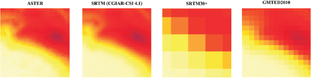 Examples of the topography detail displayed by the selected digital elevation models.