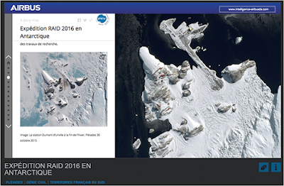 • Pour ravitailler la station scientifique polaire Concordia, l’Institut Polaire Français Paul-Emile Victor (IPEV) organise chaque année sur la calotte polaire Antarctique, des convois successifs appelé RAID. L’expédition 2016 a été suivie par les satellites Pléiades et Airbus nous explique comment grâce à cette Story Map réalisée avec ArcGIS Online.