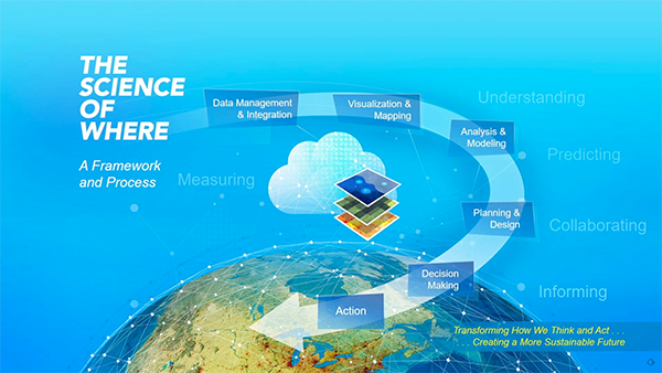 "The Science Of Where" est une nouvelle manière de penser notre monde et de répondre aux questions qu'il nous pose. Les utilisateurs Esri ont désormais la charge, non seulement de gérer des bases de données géographiques mais aussi et surtout d'utiliser la cartographie et les capacités d'analyses offertes par les SIG pour accélérer la transformation digitale de leurs organisations, de leurs territoires et de leurs communautés. En maitrisant l'analyse des Big-Data, la diffusion de l'information en temps-réel et la collaboration avec leurs communautés, les géomaticiens d'aujourd'hui facilitent la compréhension de phénomènes, de tendances et d'enjeux parfois très complexes et souvent ignorés.