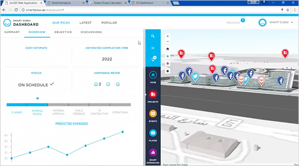 Bien d'autres sujets techniques et solutions Esri ont été démontrés durant cette session plénière de la UC. La 3D a été largement à l'honneur avec plusieurs démonstration impressionnante sur les nouvelles capacités de Smart Mapping 3D par exemple, ou encore de magnifiques exemples d'applications 3D développées avec l'API JavaScript 4.x dans le cadre du projet Smart Dubai (à voir absolument en vidéo).