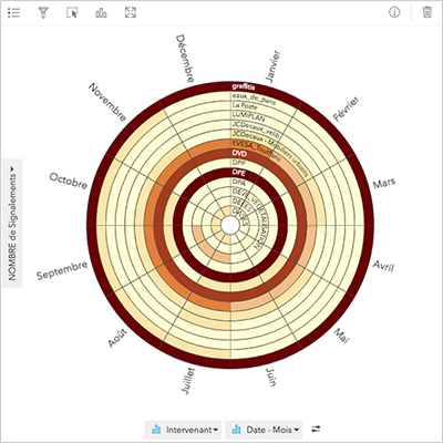 L'intérêt d'une application comme Insights for ArcGIS est de pouvoir combiner des représentations cartographiques et tabulaires avec une multitude de déclinaisons graphiques à l'aide de diagrammes. Cette version 2.0 introduit 4 nouveaux types de diagramme: