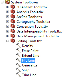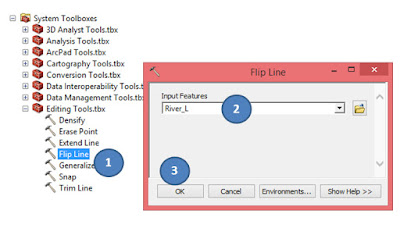 - Melalui ArcToolbox, run tool Editing Tools > Flip Line