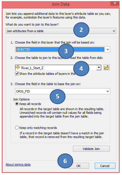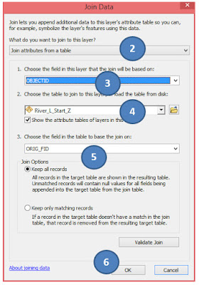 Untuk join table start point kepada layer sungai, buat step berikut :-