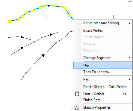 i) Buat proses Start Editing, kemudian double-click line yang salah direction, lepas tu right click dan pilih Flip. Tapi cara ni kena buat satu-satu manually.