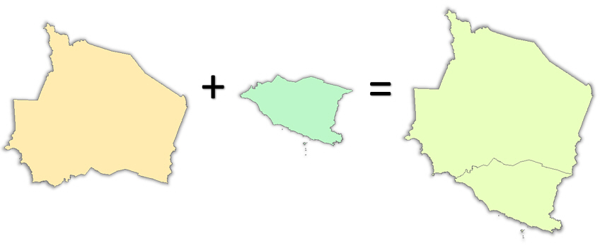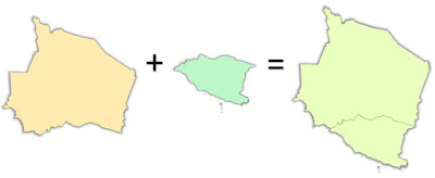 Antara soalan yang pernah ditanya kepada saya ialah macamana nak gabungkan banyak-banyak layer menjadi satu layer. Contohnya mungkin agensi negeri bina data GIS mengikut negeri masing-masing, kemudian di peringkat Ibu Pejabat nak gabungkan pulak kesemua data-data negeri tu menjadi satu layer yang merangkumi semua state. Contoh yang lain, mungkin anda dapat data jalanraya mengikut pecahan daerah, kemudian anda nak gabungkan kesemua layer jalan daerah tu menjadi satu layer jalan negeri. Cuba lihat contoh gambar di bawah. Saya ada dua layer sempadan negeri, Negeri Sembilan dan Melaka. Saya nak gabungkan kedua-dua layer sempadan ni menjadi satu layer sahaja yang mengandungi polygon Negeri Sembilan dan Melaka.