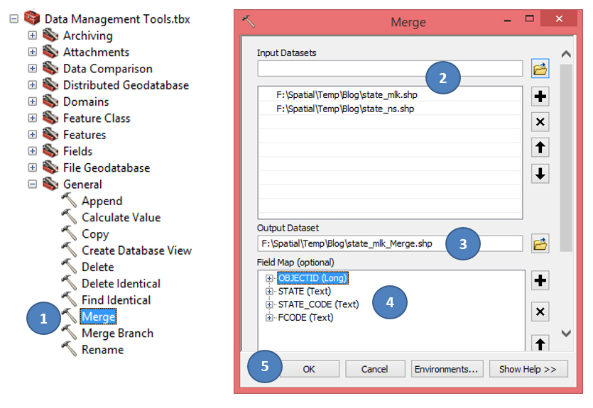 - Dalam ArcToolBox, klik Data Management Tools > General > Merge