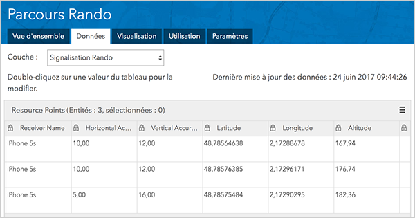 Lors de la création d'un service d'entités hébergé (à partir d'un des modèles disponible sur ArcGIS Online), vous pouvez dorénavant cocher une option pour stocker les métadonnées liée à la précision du GPS.