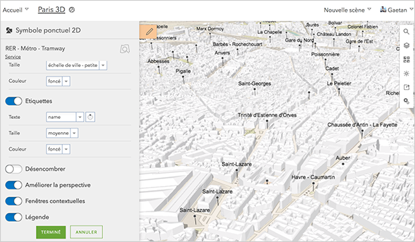 Une fonctionnalité permettant de créer une couche de scène à partir d'une couche d'entités (de type point ou multipatch) avait été introduite en beta dans la mise à jour précédente d'ArcGIS Online. Elle n'est dorénavant plus en beta. Vous noterez qu'à partir d'aujourd'hui l'hébergement de couches de scènes consomme des crédits (crédits de stockage: 1.2 credits pour 1 Go stocké par mois).