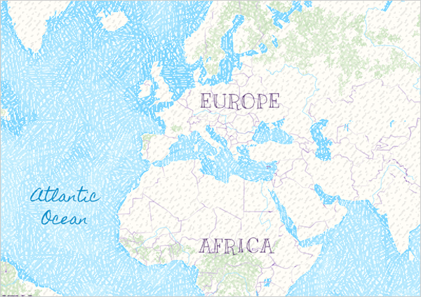 Comme son nom l'indique, ce style de fond de carte vectoriel propose une cartographie avec un aspect dessiné à la main, comme s'il avait été créé à l'aide de crayons de couleur.