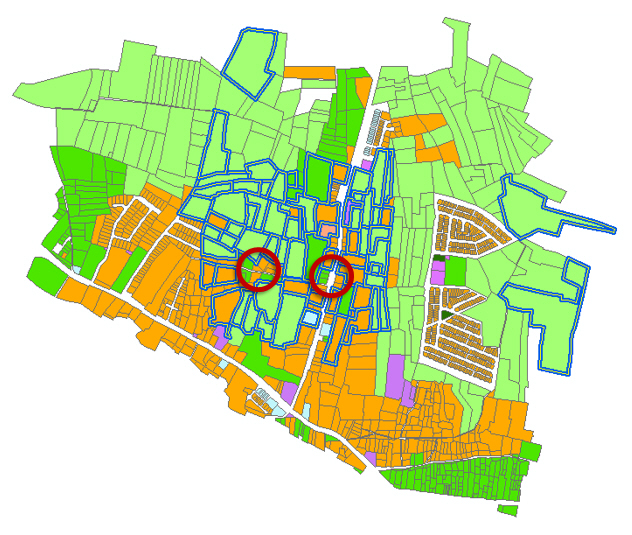 | Polygon berkeluasan kurang dari 2000 m square dibuang dari result selection sedia ada (bulatan merah) |