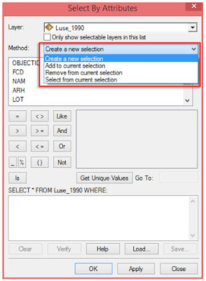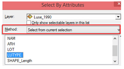 Kalau anda setkan 4 kaedah selection ni melalui Select by Attributes pulak, setting ni hanya effect untuk hasil selection yang anda buat melalui dialog Select by Attributes.
