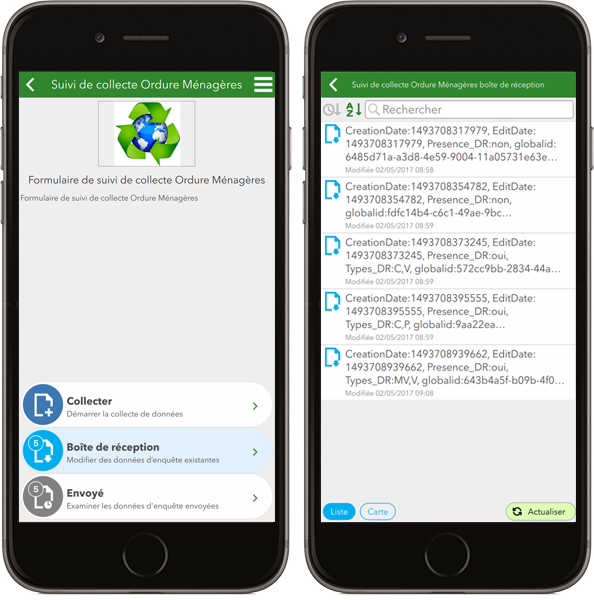 La version 2.0 de Survey123 permet de modifier les données des enquêtes que vous avez déjà soumises. Plus intéressant encore, il devient désormais possible de modifier des données existantes dans le service d'entités même si elles ont été collectées par autre utilisateur ou via une autre application que Survey123. Ceci est possible grâce à la nouvelle notion de "Boite de réception" de l'application Survey123 et si l'auteur du formulaire a activé cette capacité.